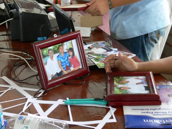 예쁘게 찍은 가족 사진을 액자에 넣고 있는 이 손의 임자는?